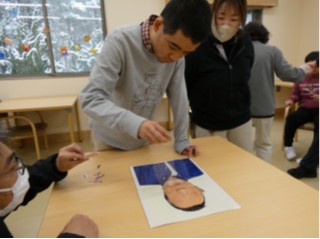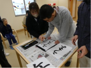 当日は、昨年度も行った書初めに加え、今年度は福笑いをし、笑顔をあふれる企画となり、皆さんとても楽しそうに参加しておられました。